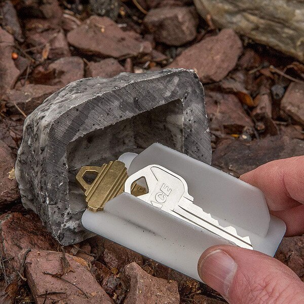 Šis akmens formas atslēgu turētājs lieliski iekļaujas āra vidē, nodrošinot, ka atslēga paliek drošībā un paslēpta.