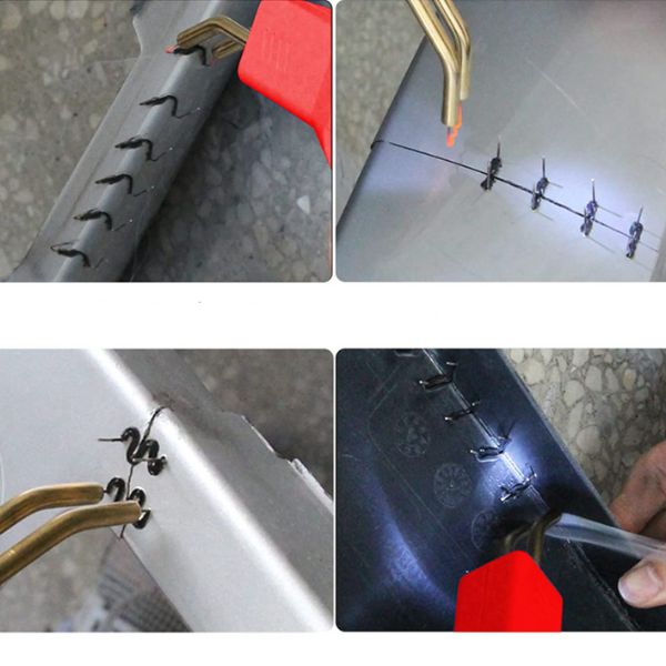 Komplektā ietilpst: 1x metināšanas ierīce, 1x knaibles, 1x nazis, 200 dažādas skavas.