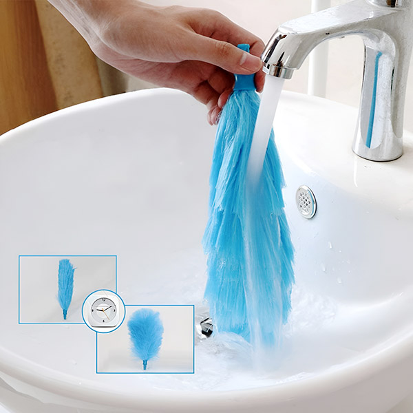 Vairs nekādu vienreizlietojamo putekļu slotiņu! Viegls dizains atvieglo tīrīšanu augstās vietās, savukārt mazgājamā mikrošķiedras galva kalpo gadiem—vienkārši izskalojiet un atkārtoti izmantojiet, ietaupot laiku un naudu.