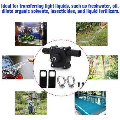 - Ļoti jaudīgs ūdens sūknis, kas savienojams ar rokas urbi ātrai šķidrumu sūknēšanai un izliešanai.