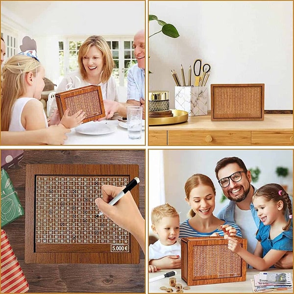 Uzstādiet savu COINSAVE naudas krājkasi dažu minūšu laikā! Komplektā iekļautais marķieris un ietaupījumu lapiņas atvieglo personalizēšanu. Tas ir elegants dizains, kas nevainojami iederas jūsu mājās vai birojā.