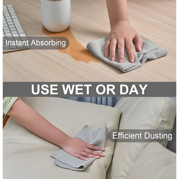 Augstas kvalitātes mikrošķiedras drāna uzsūc ūdeni, eļļas, putekļus un traipus, atstājot virsmas nevainojami tīras un bez švīkām.